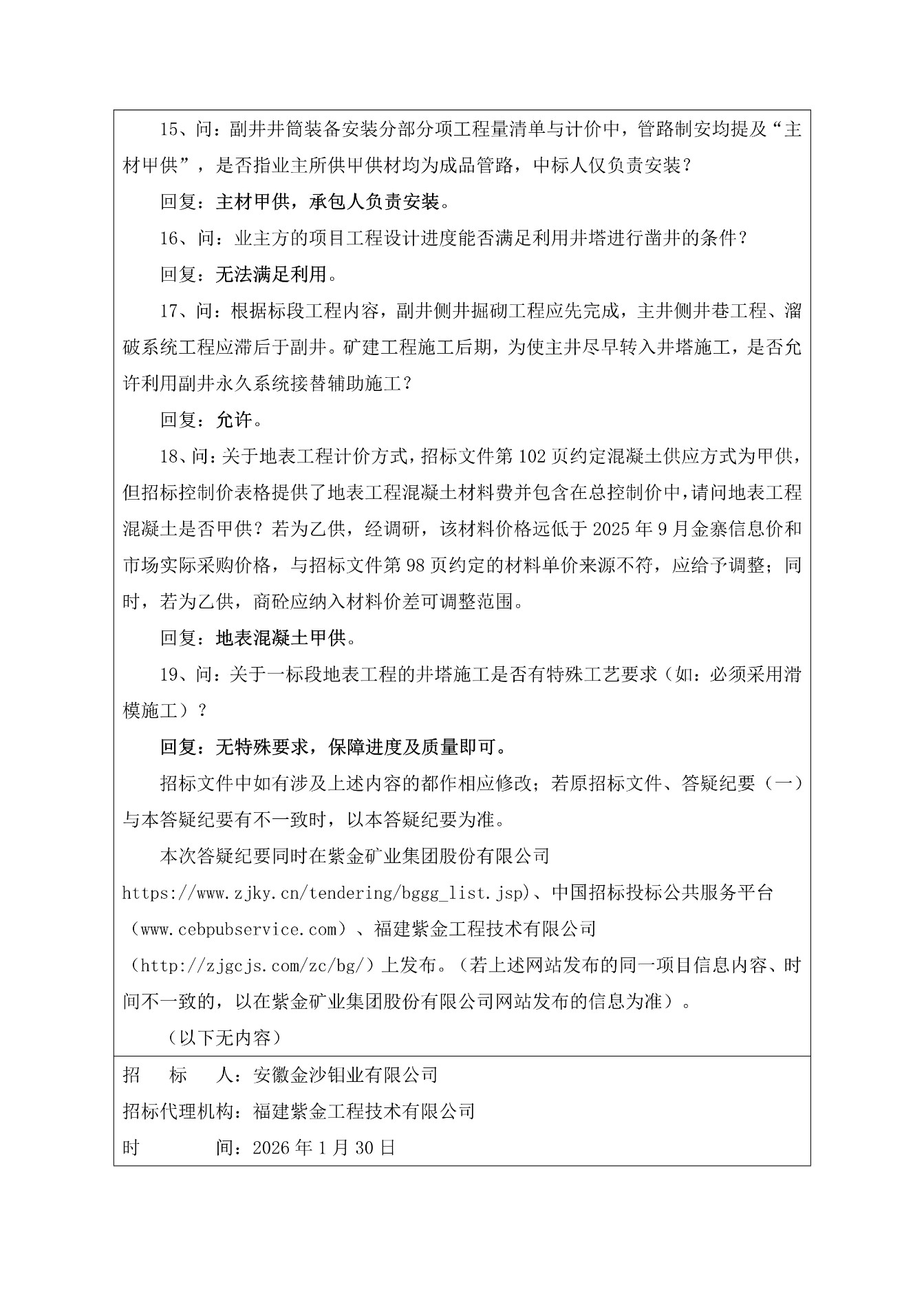 变更公告 | 安徽金沙钼业有限公司沙坪沟钼矿1000万吨年采选项目井建工程(二标段)答疑纪要(二)